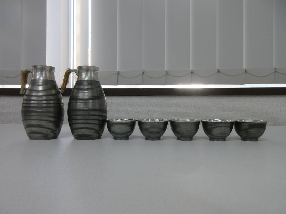 中古 酒器 酒器セット 錫器の栞 徳利2点 お猪口5点 ぐい呑み とっくり