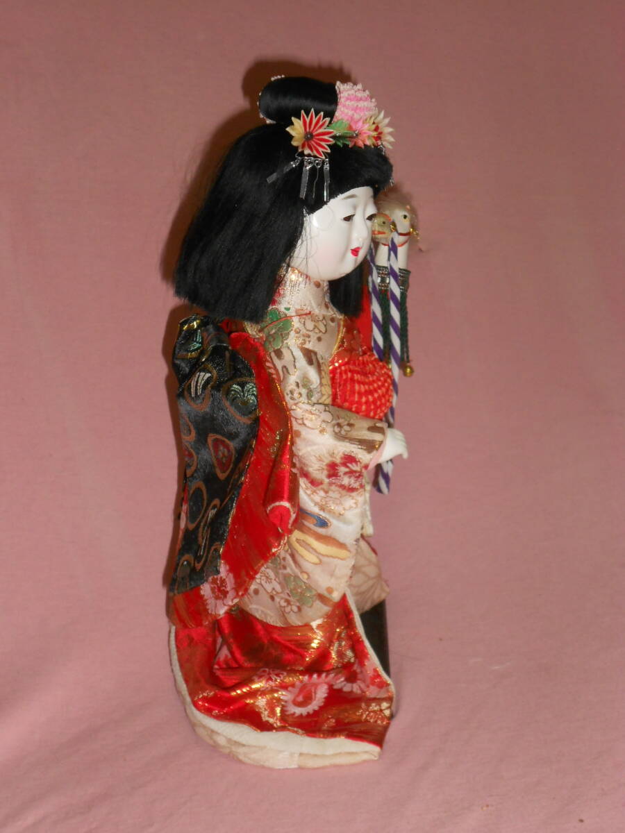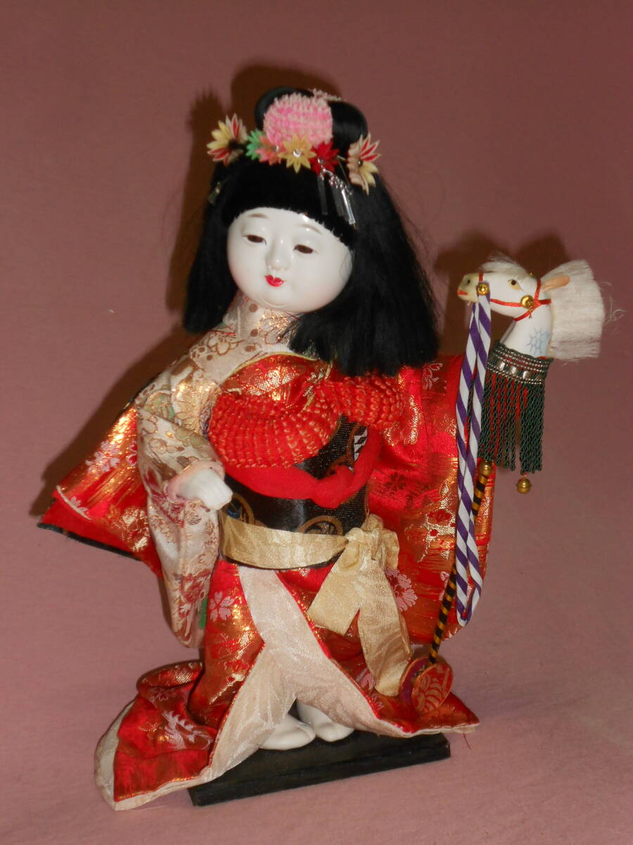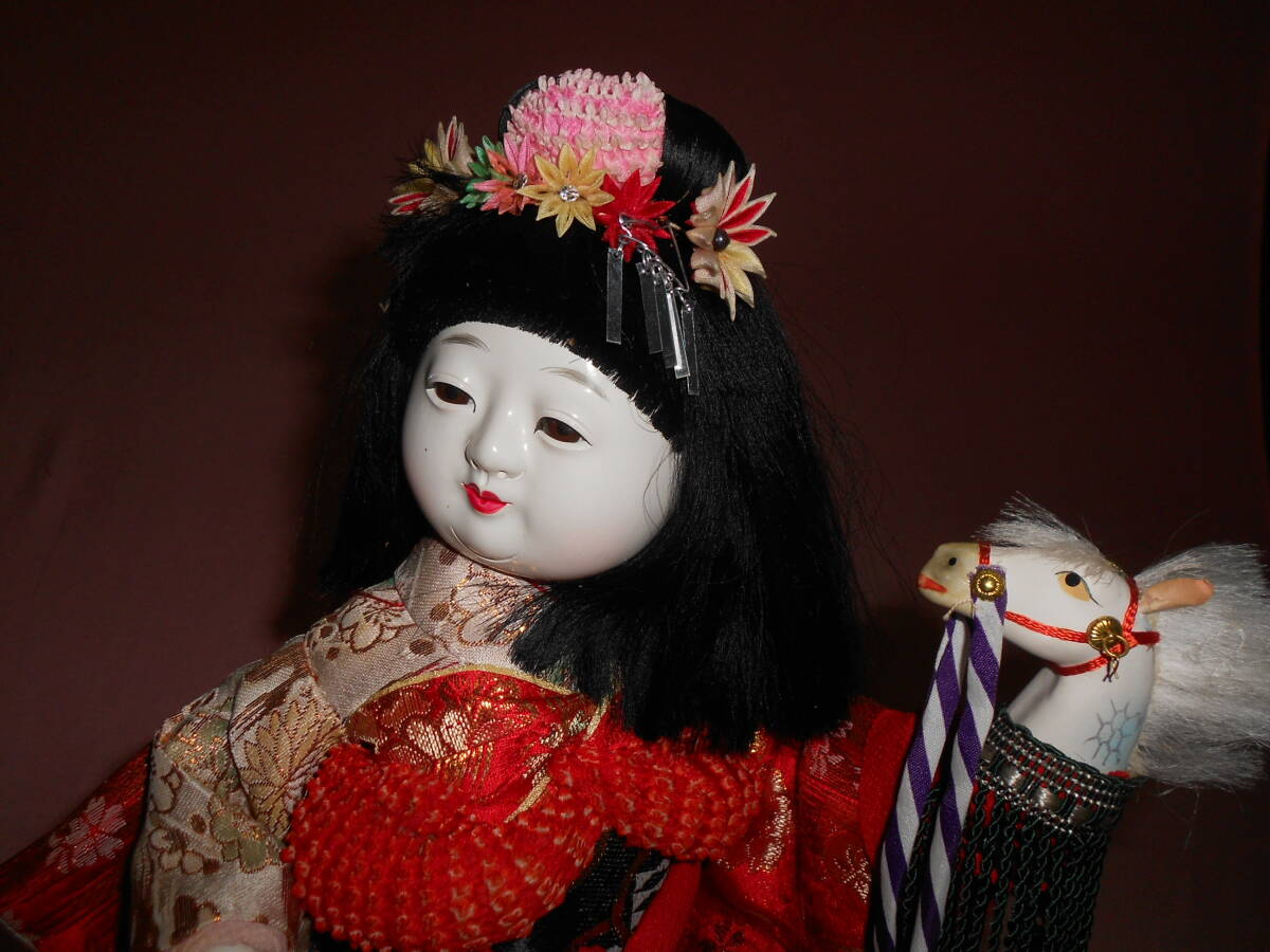 古い市松人形★女の子・着物姿・飾り馬・作者不明★ジャンク