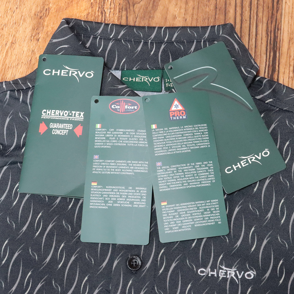 1円/CHERVO/46サイズ/高機能ポロシャツ ANTEIL 総柄プリント 吸湿速乾 快適 ゴルフ 長袖 シェルボ 新品/黒/ブラック/md126/