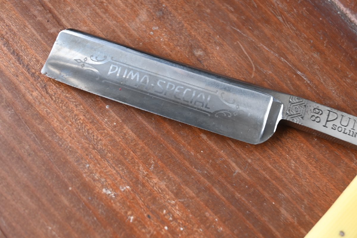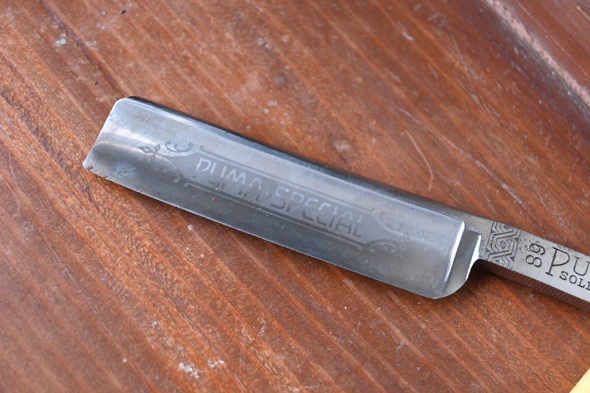 ○PUMA SPECIAL SOLINGEN ストレートレザー剃刀 ソーリンゲン ドイツ製 箱付 送料込! 古道具のgplus広島2512k