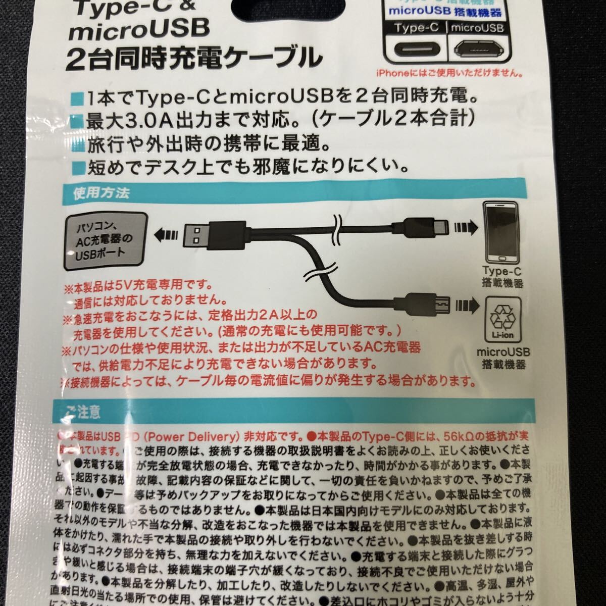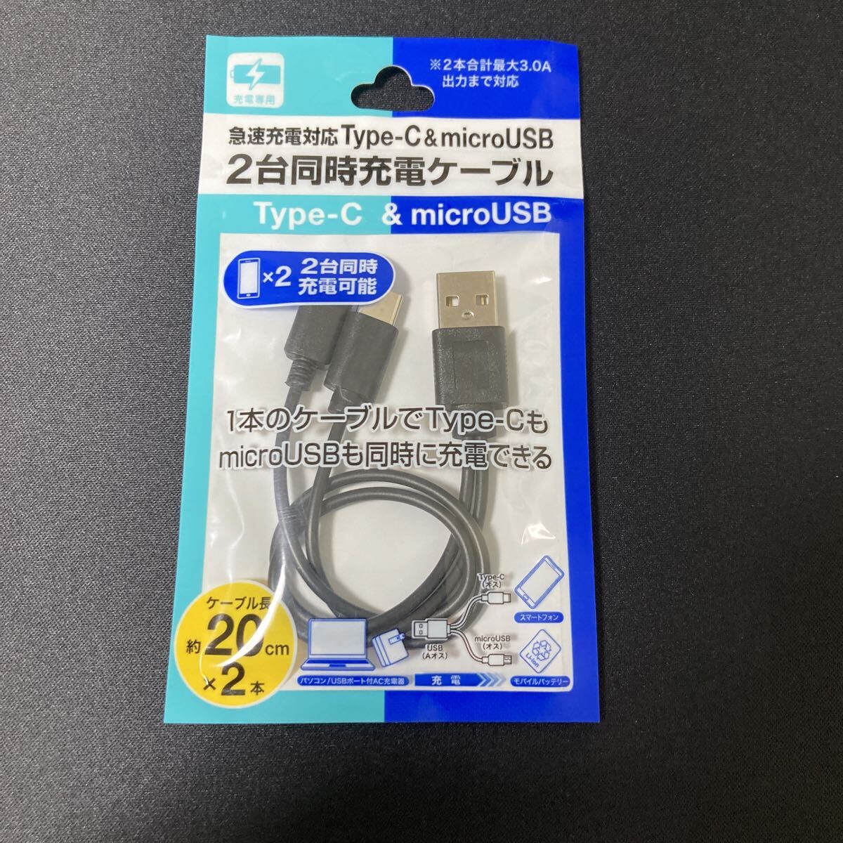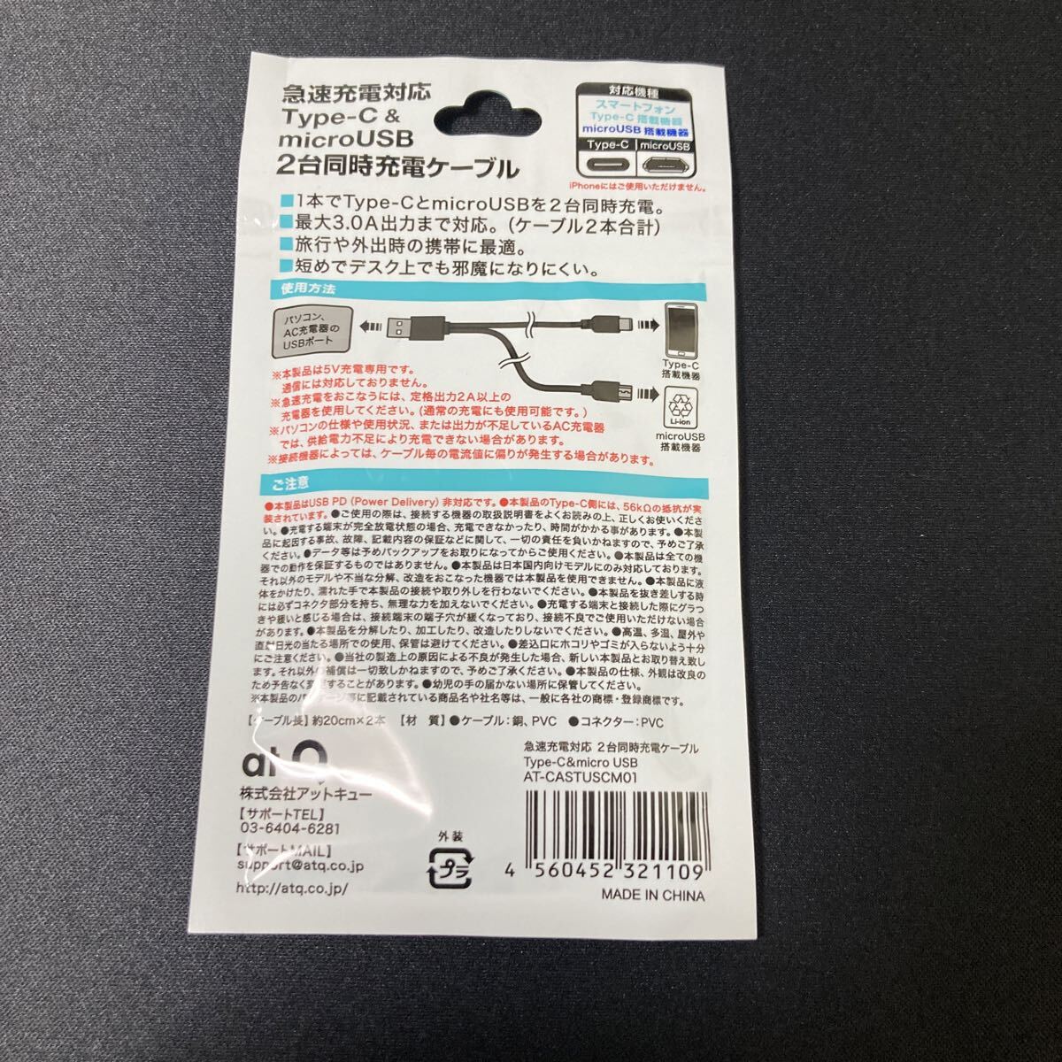 【新品】急速充電対応 Type-C&microUSB FSC 2台同時充電ケーフルType AT-CASTUSCM01
