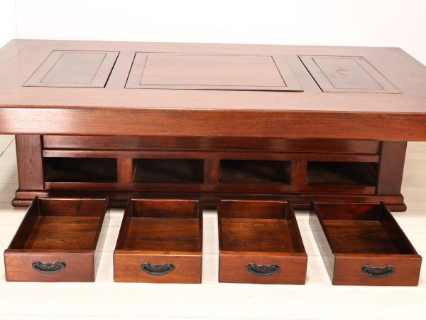 『  BK296 時代家具 欅製 総無垢 関西火鉢 座卓 囲炉裏 5尺 天板厚8.2㎝  』の出品です。