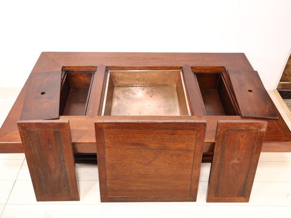 BK296 時代家具 欅製 総無垢 関西火鉢 座卓 囲炉裏 5尺 天板厚8.2㎝