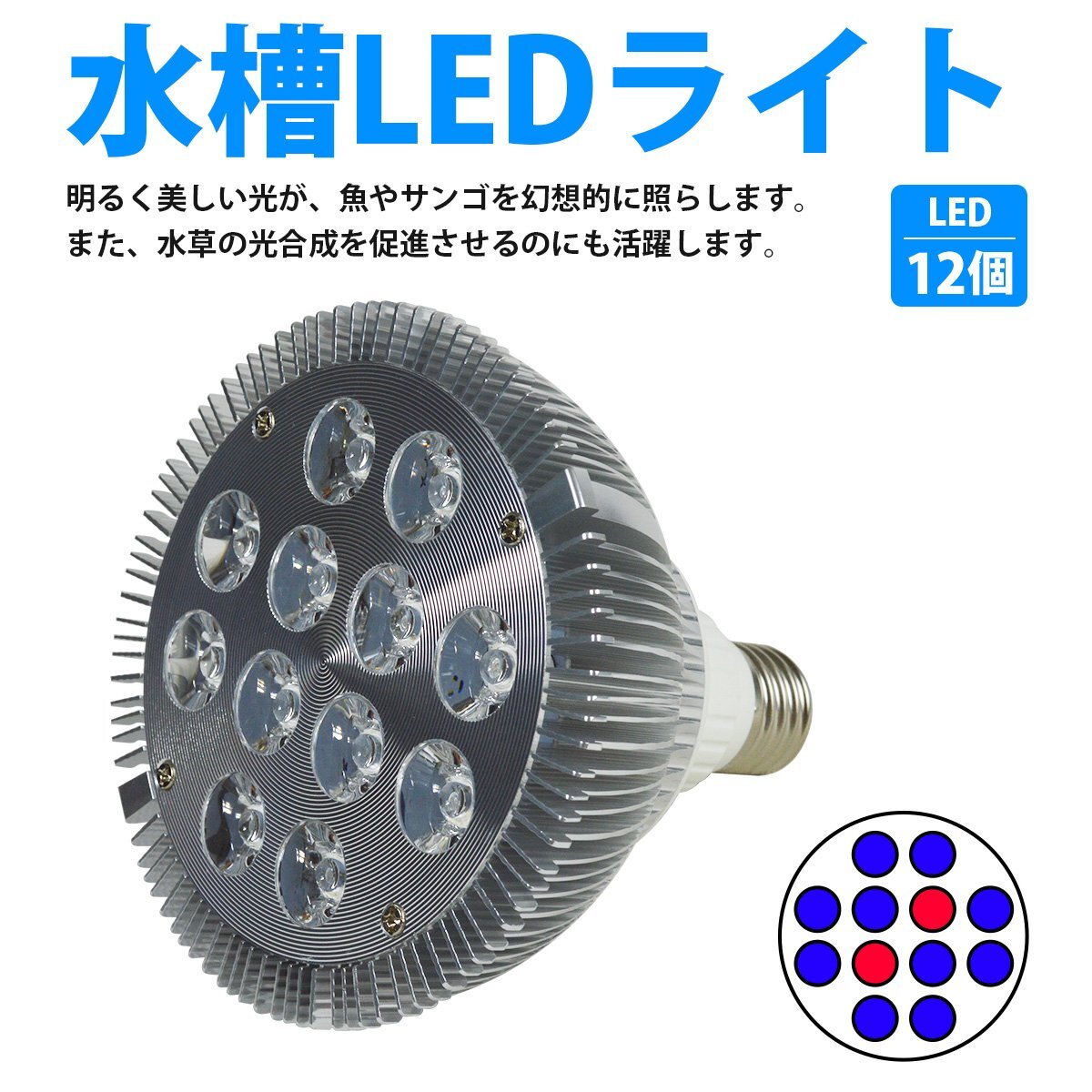 [青10赤2] 24W(2W×12) 電球 E26 口金 水槽 用 照明 植物育成 スポット ライト 12LED アクアリウム 電球 水草 サンゴ 熱帯魚
