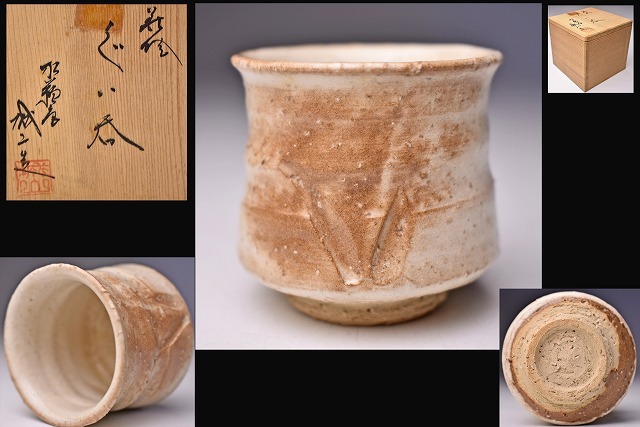 サイズは 60mmx高さ57mm です。 萩焼 の 大野誠二 氏の 作品です。 白化粧タイプの 萩の ぐい呑です。 大野誠二 氏の作品は 意外と見かけません。 宅配便60サイズにて発送します。 他にも多数出品してます。同梱対応いたします。
