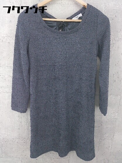 ◇ NATURAL BEAUTY BASIC ナチュラルビューティーベーシック リボン 長袖 膝丈 ワンピース サイズM グレー レディース
