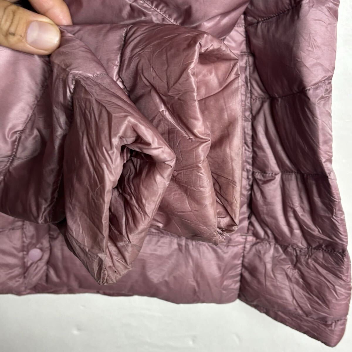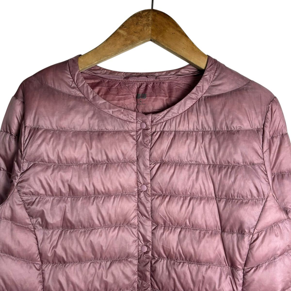 【品名】(KA1221-9) UNIQLO ユニクロ ウルトラライトダウン ジャケット Mサイズ ノーカラー 襟なし ダウンジャケット レディース ピンク 軽量 定番
