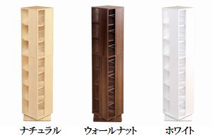 | 【ポイント】 くるくる回る回転式なので探しやすい! コンパクト設計だから省スペースにおけます。 本やDVDが約280冊収納できる大容量です。 カラーはインテリアに馴染む3色がございます。 |