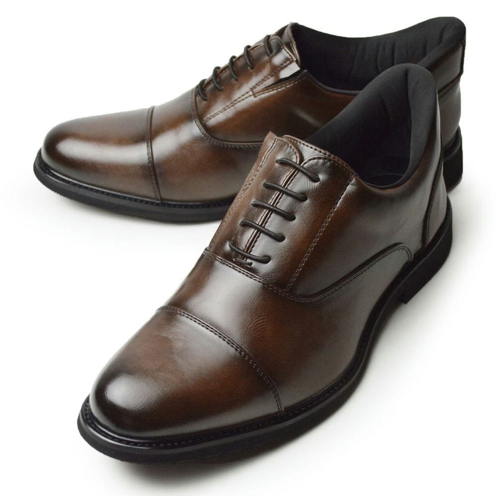 新品■26cm ビジネスシューズ 立ったまま履ける 軽量 紳士靴 靴ベラ不要 ゴム紐 ほどけない 内羽根 ストレートチップ 防滑 ソフトレザー