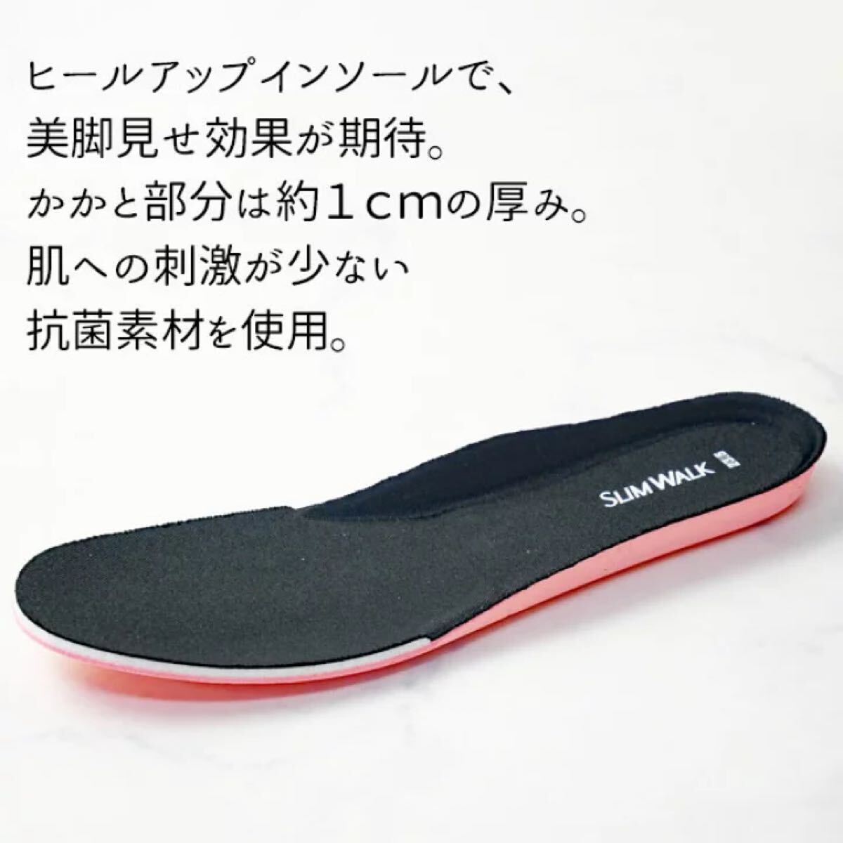 【オリジナル美脚インソール搭載】 ヒールアップインソールによりスッキリ見え、着用時に膝位置が高くなり美脚に見える視覚効果が期待できます つま先からかかとにかけて高くなるウェッジ形状です