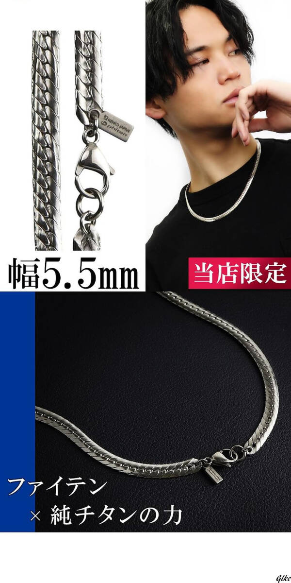 日本製・純チタンを使用した平喜平チェーンタイプのネックレス。