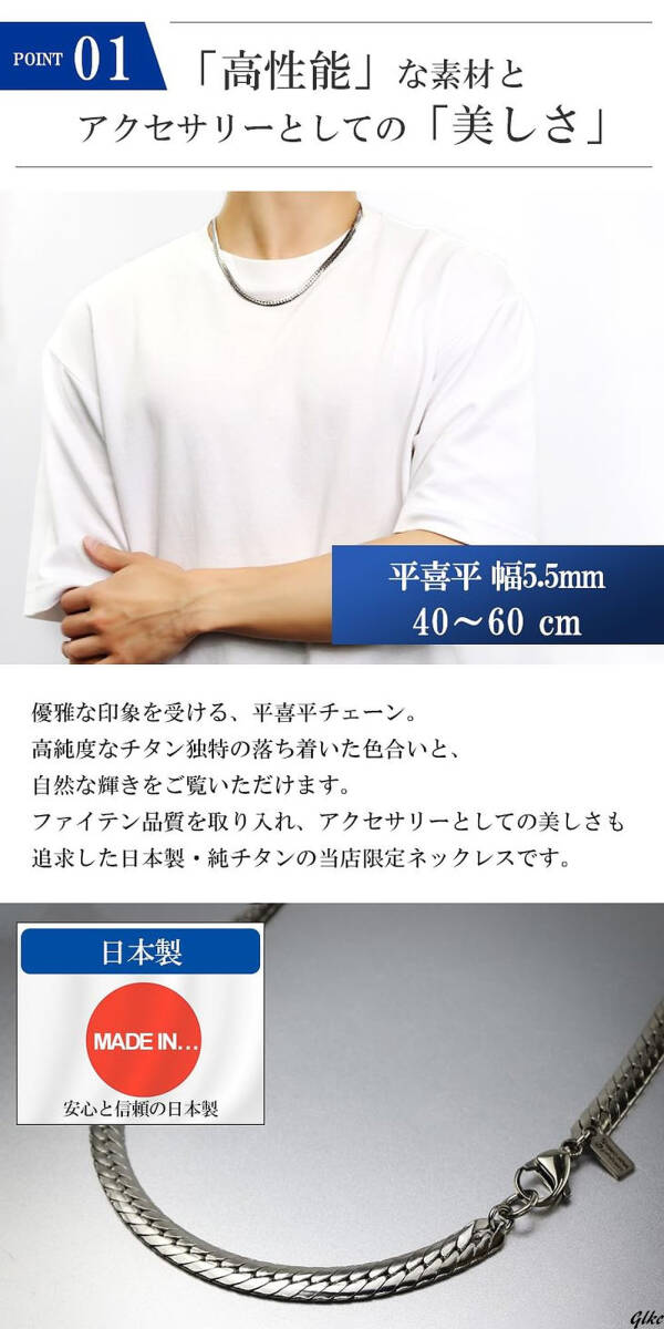 【シンプルなデザインでシーンを問わず長く使える】 純チタン 平喜平ネックレス 金属アレルギー対応 アクセサリー 日本製 ギフト 男性
