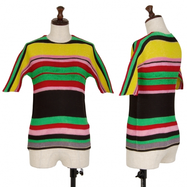 | イッセイミヤケISSEY MIYAKE PLEATS (T.) ボーダーストレッチプリーツTシャツ マルチ3 |