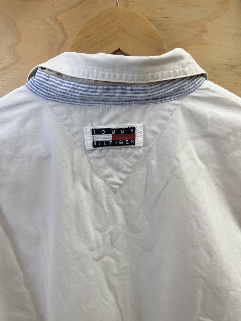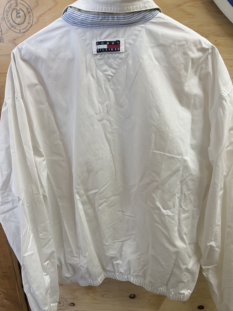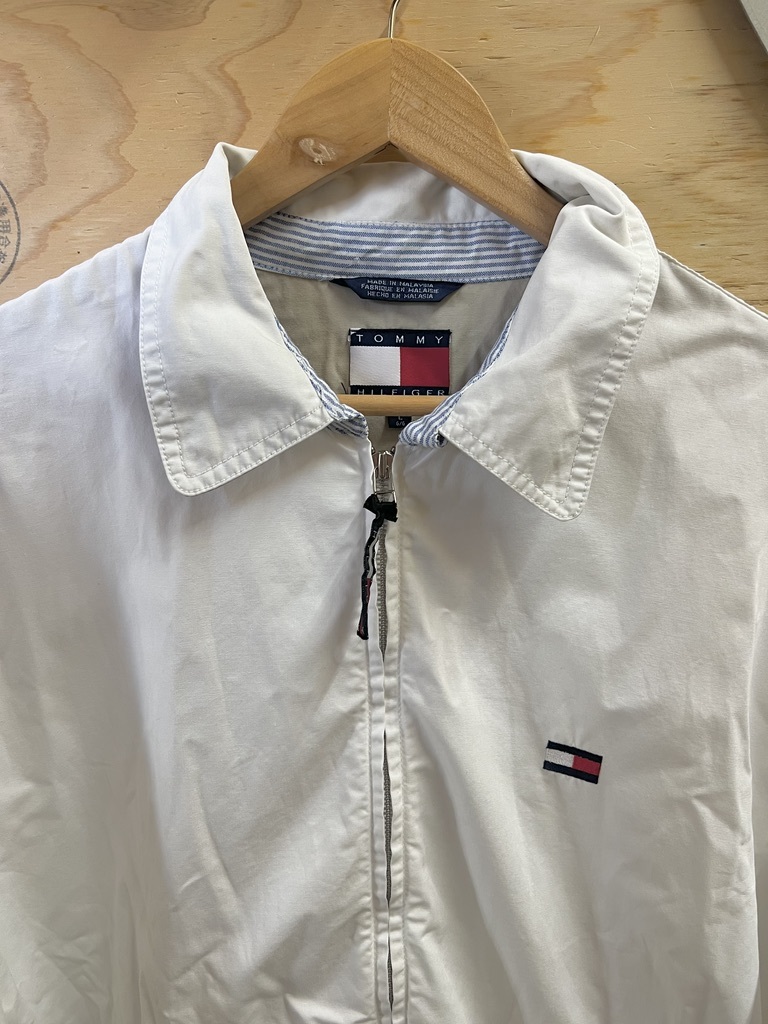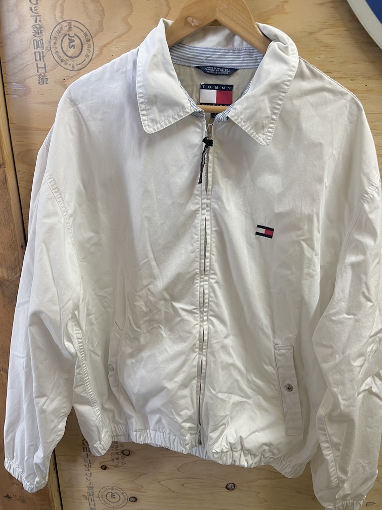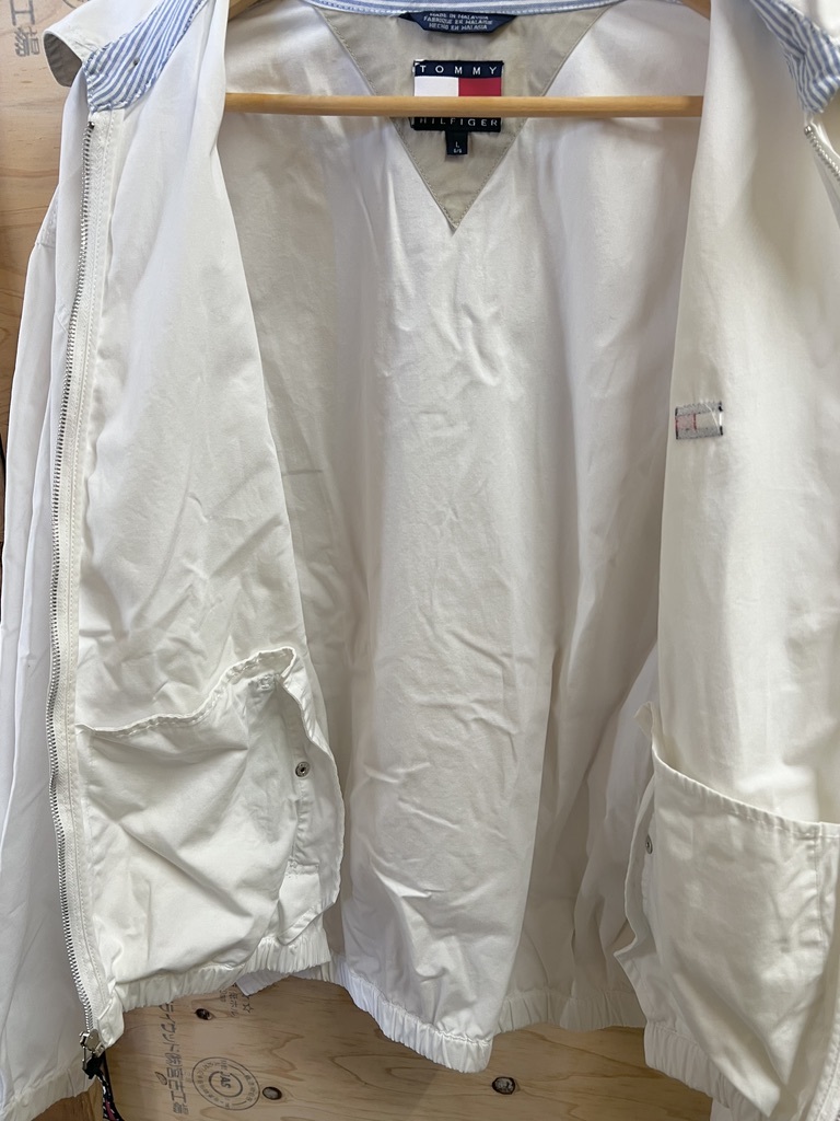 90's TOMMY HILFIGER/トミーヒルフィガー スウィングトップ ショート丈ブルゾン ヴィンテージ ホワイト メンズ Lサイズ used