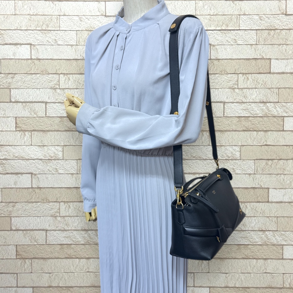 | サイズ | W約27.5cm x H約17cm x D約12.5cm ハンドル:約17cm ショルダー:約最大114cm 付属品:替えハンドル(シルバー金具)約38cm |