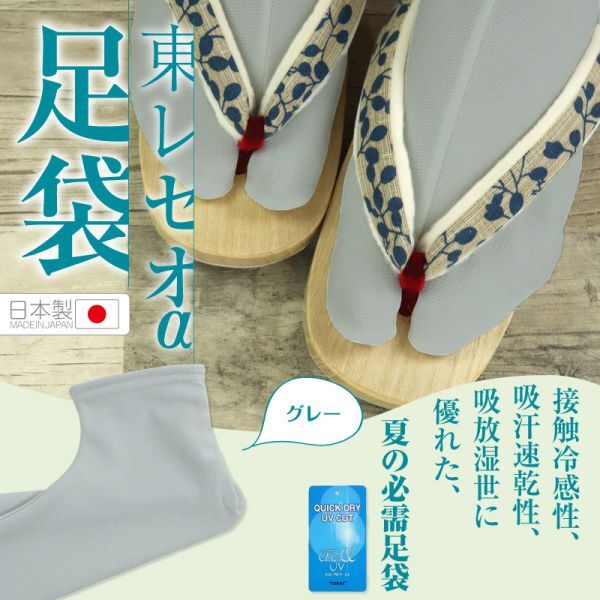 【東レ セオa足袋】『グレー』23.5cm-24.0cm UVカット 吸汗 速乾 接触冷感 ベンクール足袋 ストレッチ足袋 こはぜなし 新品