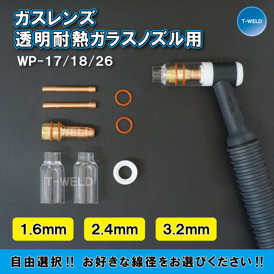 【線径自由選択】 TIG WP17/18/26用 ガスレンズ 透明耐熱 消耗品セット 線径 (1.6mm 2.4mm 3.2mm ) 1セット