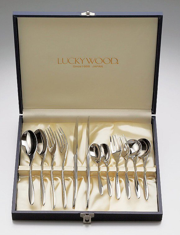 ☆ラッキーウッドマリールペアディナー12Pセット高級18-10ステンレス使用ミラー仕上げ日本製新品