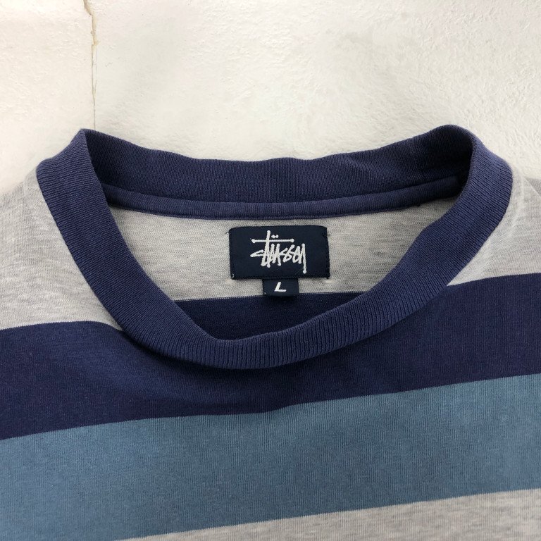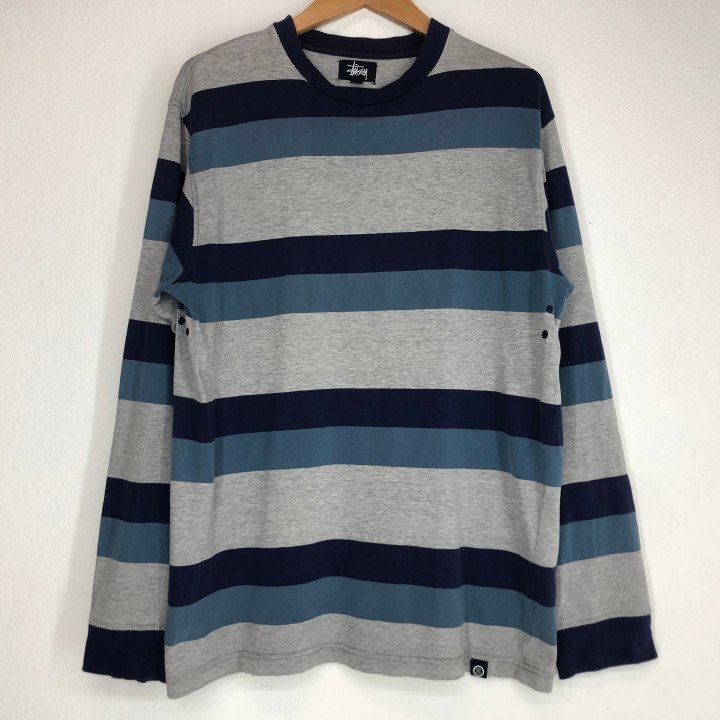 | 90s OLD STUSSY ステューシー クルーネック ボーダー 長袖 Tシャツ SIZE: L ネイビー/グレー ヴィンテージ MH632025051308 | |