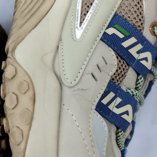【状態】C(全体的に汚れや、所々にひび有り。かかとの内側にダメージやアウトソールに擦り減りあり。※画像参照)