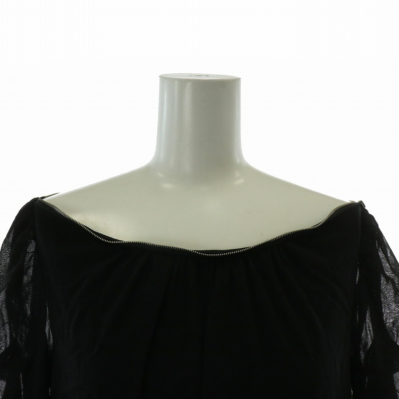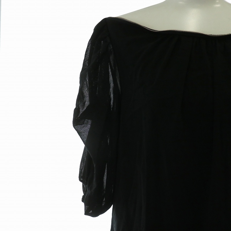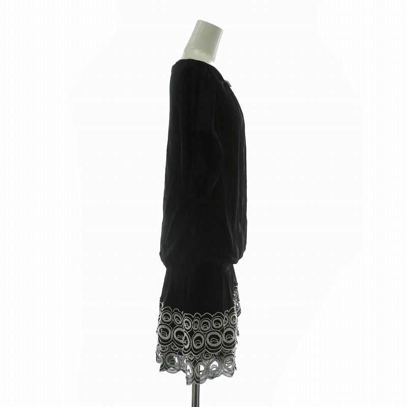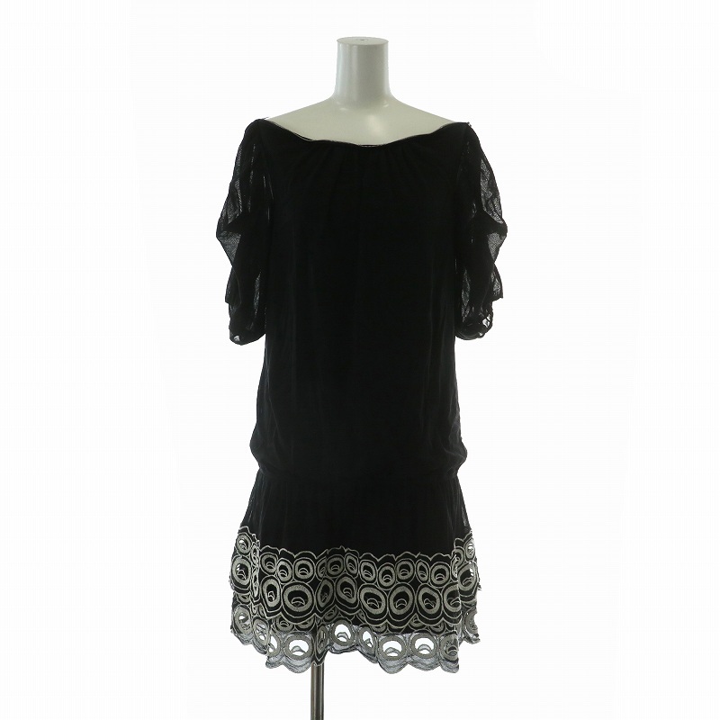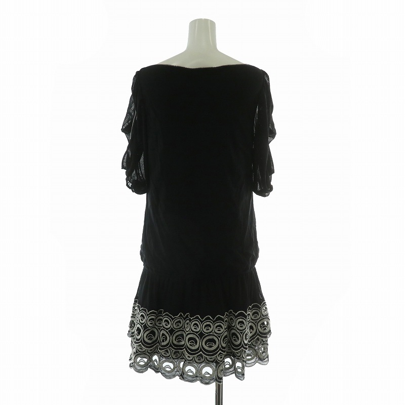 ヴィヴィアンタム VIVIENNE TAM ワンピース 半袖 シアー ひざ丈 ボートネック 刺繍 S 黒 ブラック /XZ ■GY19 レディース