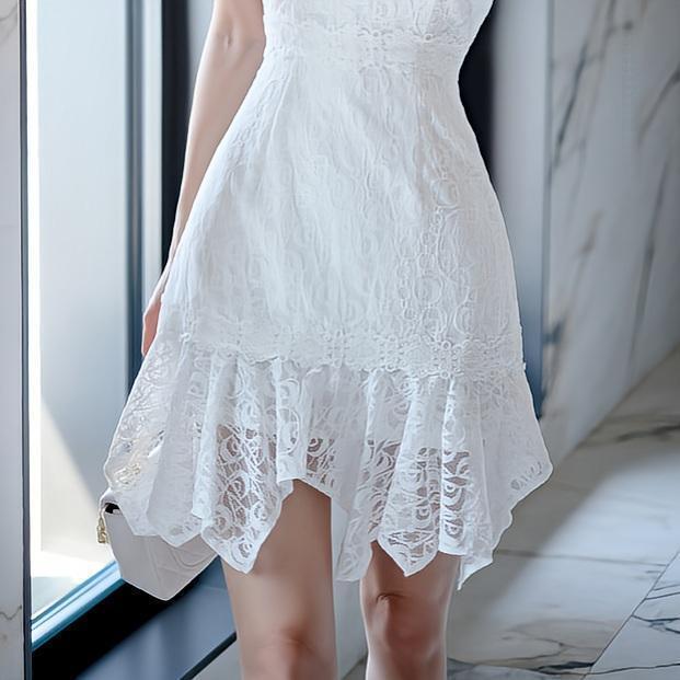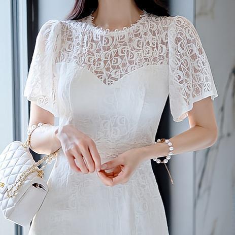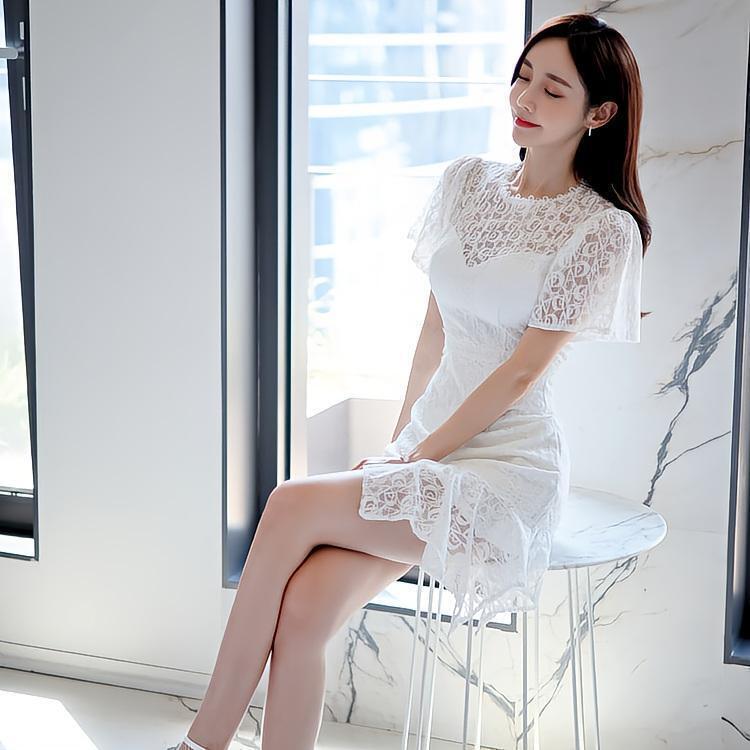 キャバドレス ミニドレス 白ワンピース レース ひざ丈 ホワイト Mサイズ パーティー 美脚 ナイトドレス 韓国ファッション