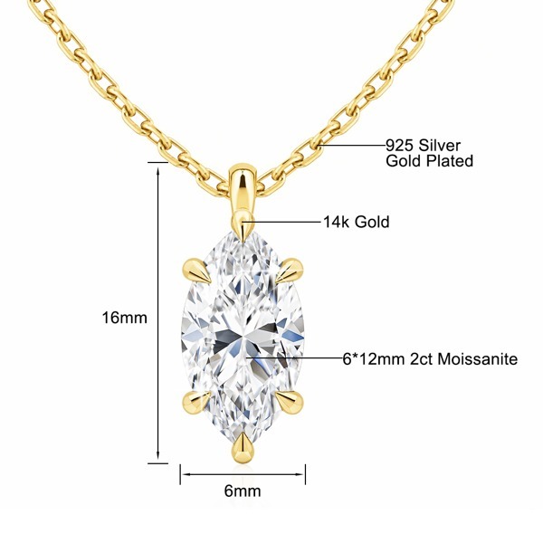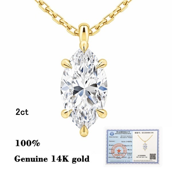リアル 14k ゴールド 585 ペンダント チャーム 5 爪マーキス カット モアッサナイト2ct 母の日 誕生日プレゼント ファインジュエリー