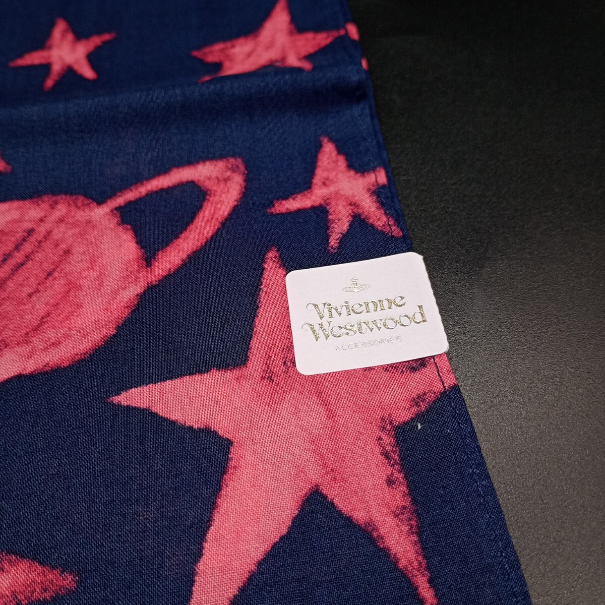 Vivienne Westwood ヴィヴィアンウエストウッド ハンカチ ネイビー レッド スター オーブ柄  ② no.3018