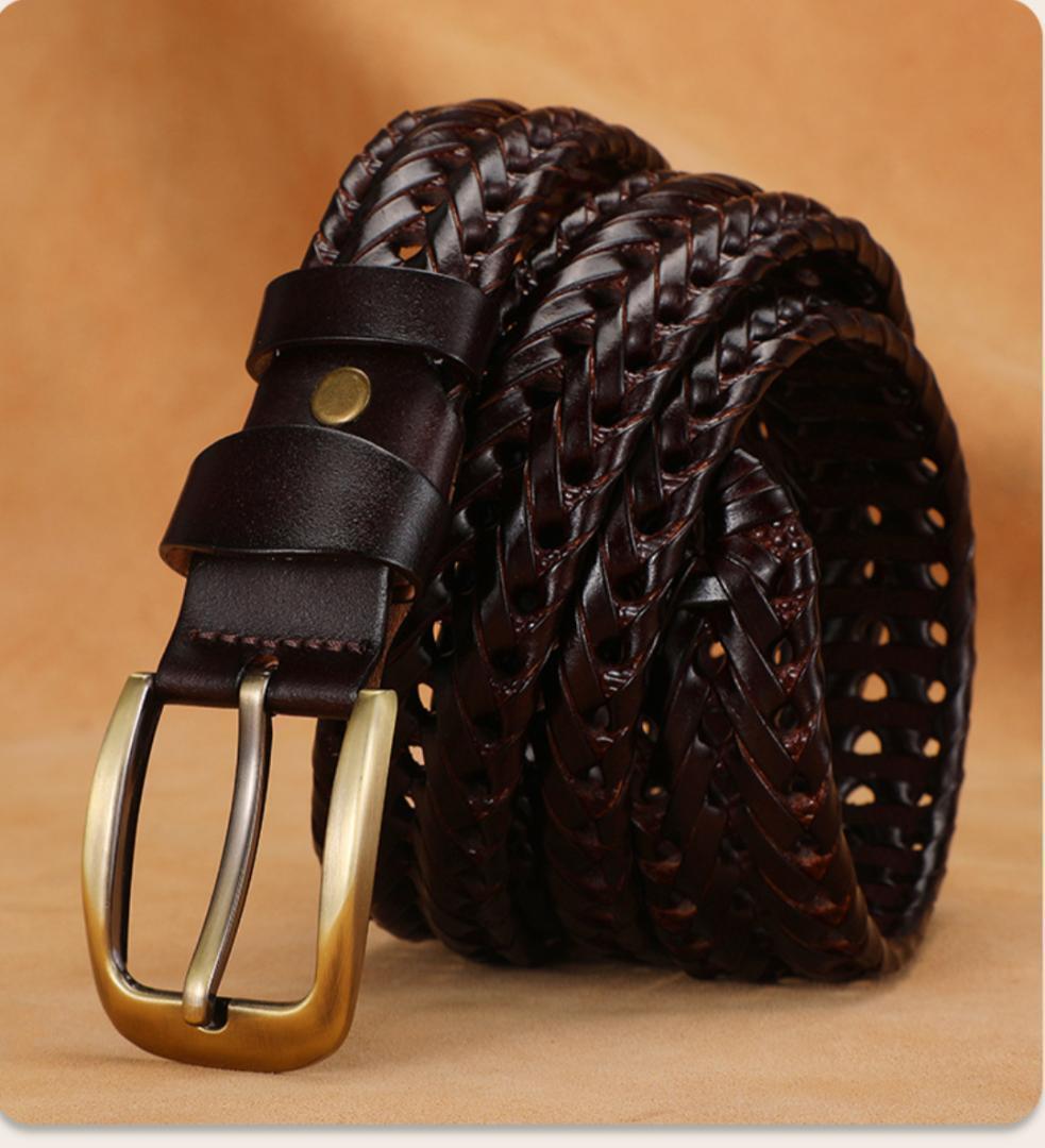 しっかりと存在感ある編み込みベルト、先端に至るまで美しい装飾が魅力、機械では難しい編み込みの行程を手作業で行った高品質タイプです。リアルレザーならでは上品な手触りとツヤ感をお楽しみください。