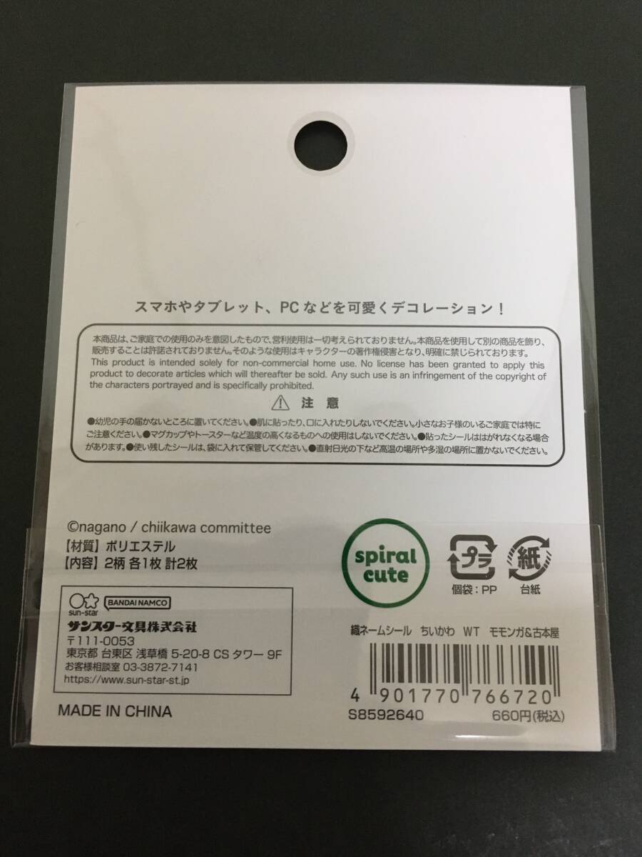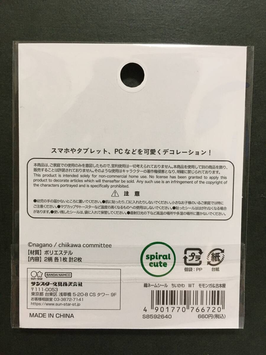 ちいかわ 織ネームシール 刺繍ステッカー モモンガ&古本屋