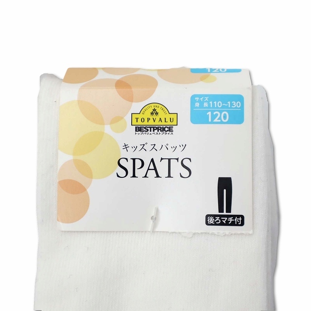 トップバリュ TOPVALU 後ろマチ付き 綿混 キッズスパッツ ホワイト 120 (110-130) キッズ