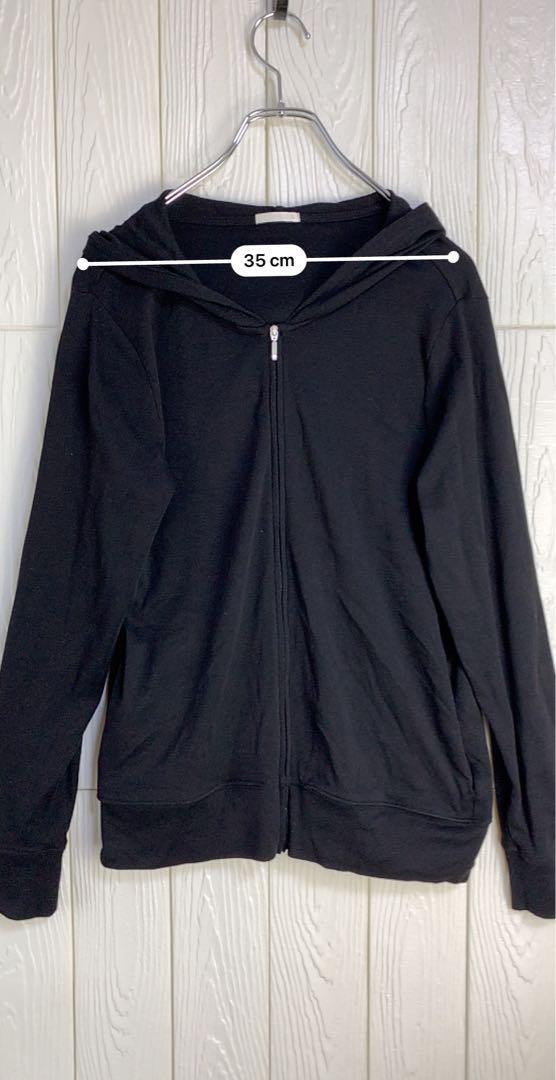 Black zippered hoodie with hood, simple and easy to use design.