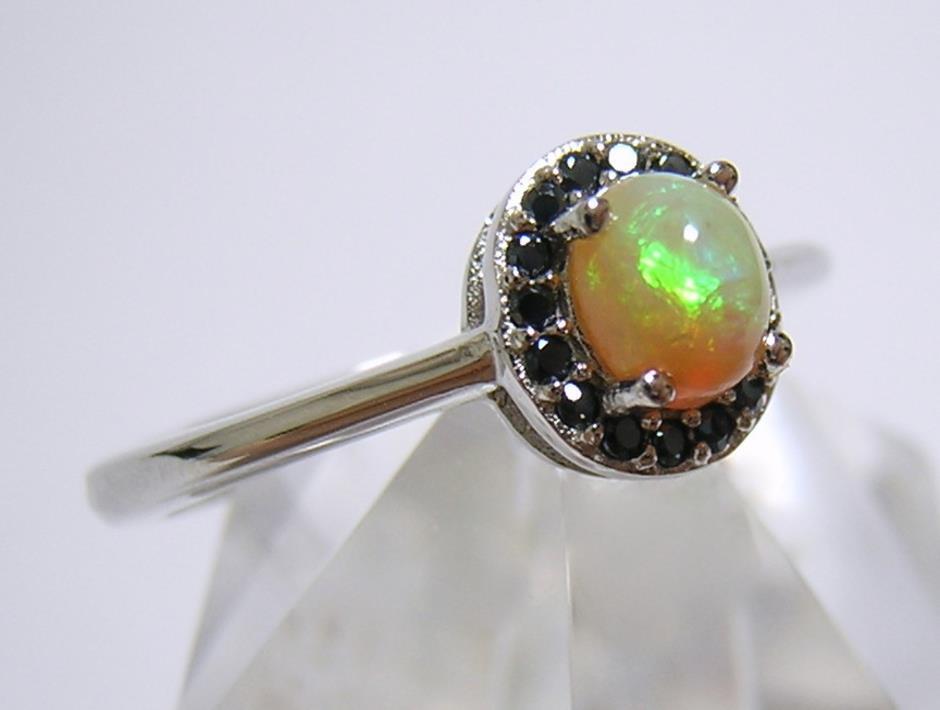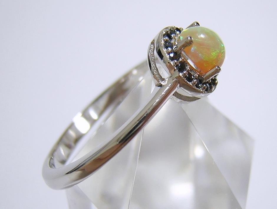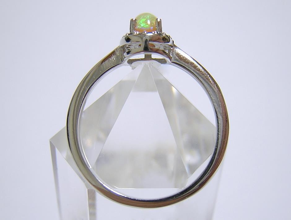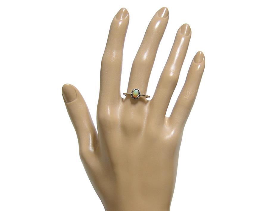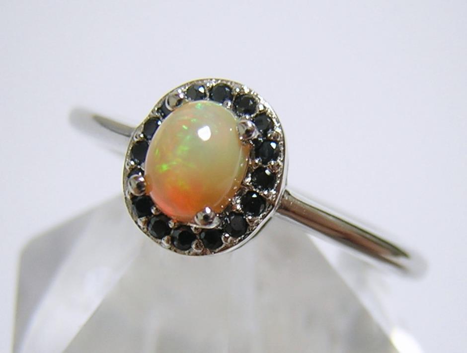 天然オパールとブラックスピネルを使用したデザインリングです。 オパールの大きさは約4.5×3.5mmです。 【中石】天然オパール 【産地】エチオピア産 【処理】非加熱 【カット】オーバルカボションカット 【脇石】天然ブラックスピネル 【重さ】1.9g 【サイズ】13.5号 (お直しは承れません) デザイン部:縦7mm×横20mm 【素材】シルバー925 (14金ホワイトゴールド仕上げ) 【刻印】S925 【状態】新品 ※地金部分に製作時からの傷やスレがあります。 |