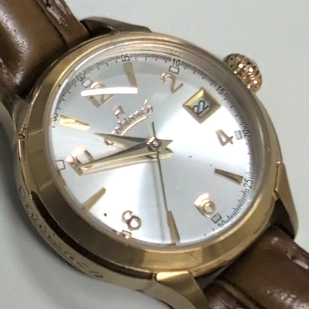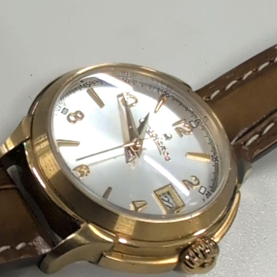 シルバーとゴールドのアナログ時計、日付表示付き。