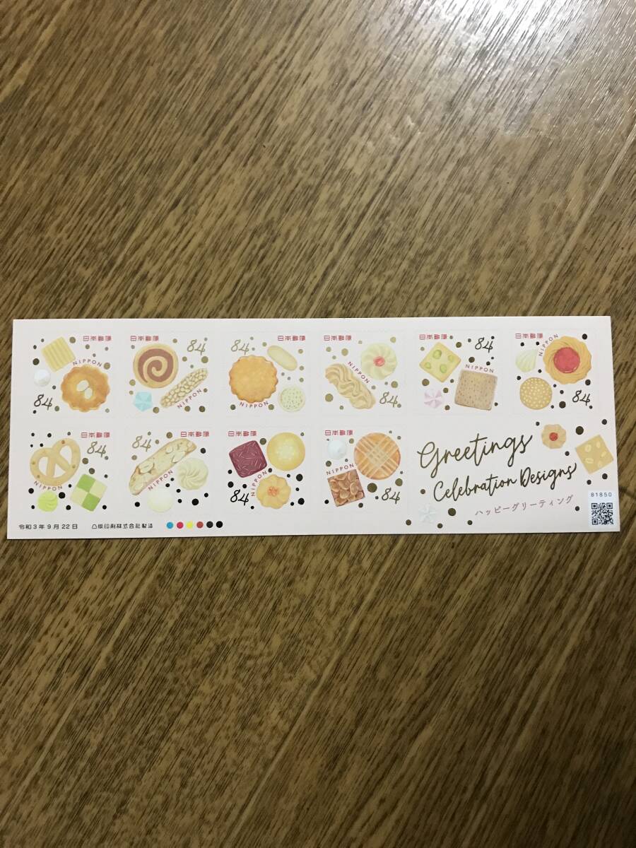 ★「ハッピーグリーティング」:シール切手シート(84円×10枚=840円分)です。