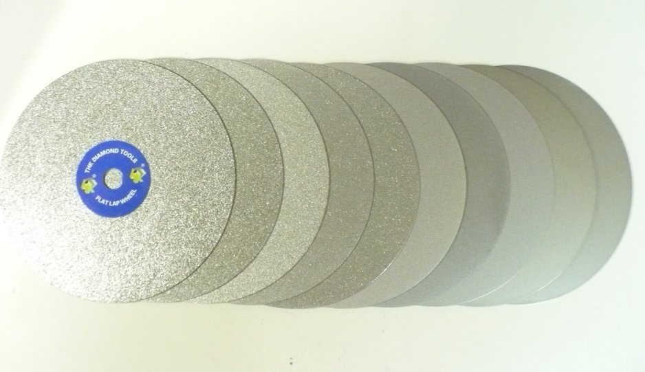商品詳細 | ダイヤモンド 研磨ホイール 150mm 1枚の価格です。 (写真のベルトサンダーと刃物研ぎ機は含みません。) ※3枚以上ご落札の場合は1枚を2200円とさせていただきます。 10枚以上ご落札の場合は1枚を2100円とさせていただきます。 ご希望の場合は質問欄よりご連絡いただければ、ご希望に合わせた 出品をいたします。 【特に焼入れ鋼、タングステン、超硬の研磨には絶大な威力を発揮します】 ※直径200mmのダイヤモンド 研磨ホイールも別途出品しています。 直径150mmの金属プレートに、惜しげもなくダイヤを塗り込めてあります。 (裏面にはダイヤは塗布されていません) ◎特徴 ・圧倒的な研磨力がありますので、普段グラインダー等で研磨されている人は とても驚かれます。 ・ダイヤ研磨は、切削抵抗が少ないため、発熱が極めて少ないです。 ハイスバイトのような熱を嫌う研磨には向いてします。 ◎注意点 ・一般的な研磨剤や砥石に比べて圧倒的な研磨力がありますので 削り過ぎに注意が必要です。 従いまして、使い方のポイントとしては、軽く当てることが大切で、そうする ことによりまして、ダイヤモンドの持ちもとても長くなります。 当方は、写真(中、右)のようにベルトサンダーの回転ディスクや刃物研ぎ機に 取り付けておりまして、バイトやサーメットチップの形成、またTIG溶接の タングステンや焼入れしてある物の研磨などに使っております。 ※径が大きく重たいため、一般的なルーターでの使用はできないと思います。 ・外径 150mm ・厚み 1.0mm(金属ベースプレートの厚み) ・穴径 1/2インチ(12.7mm)