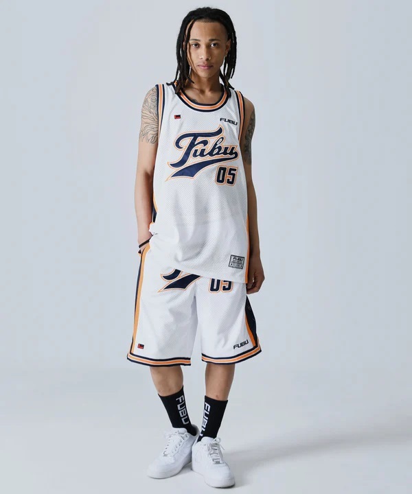 BJ89)FUBU バスケットボールタンクトップ/ジャージシャツ/フブ/XL/WHITE/USサイズ/B系/HIPHOP