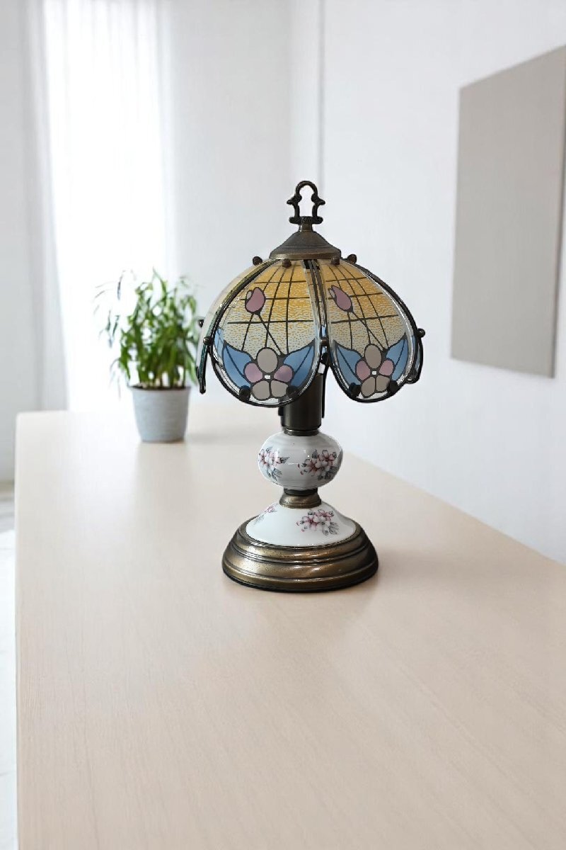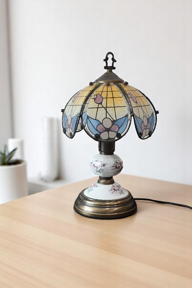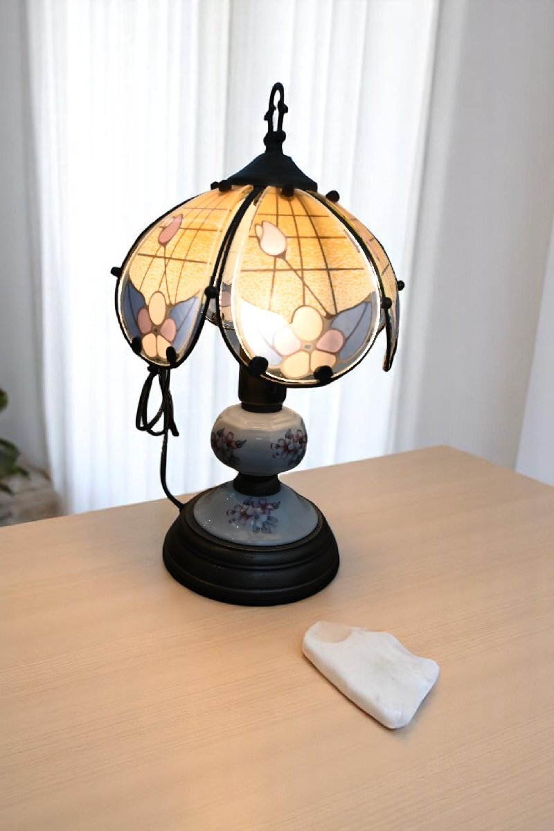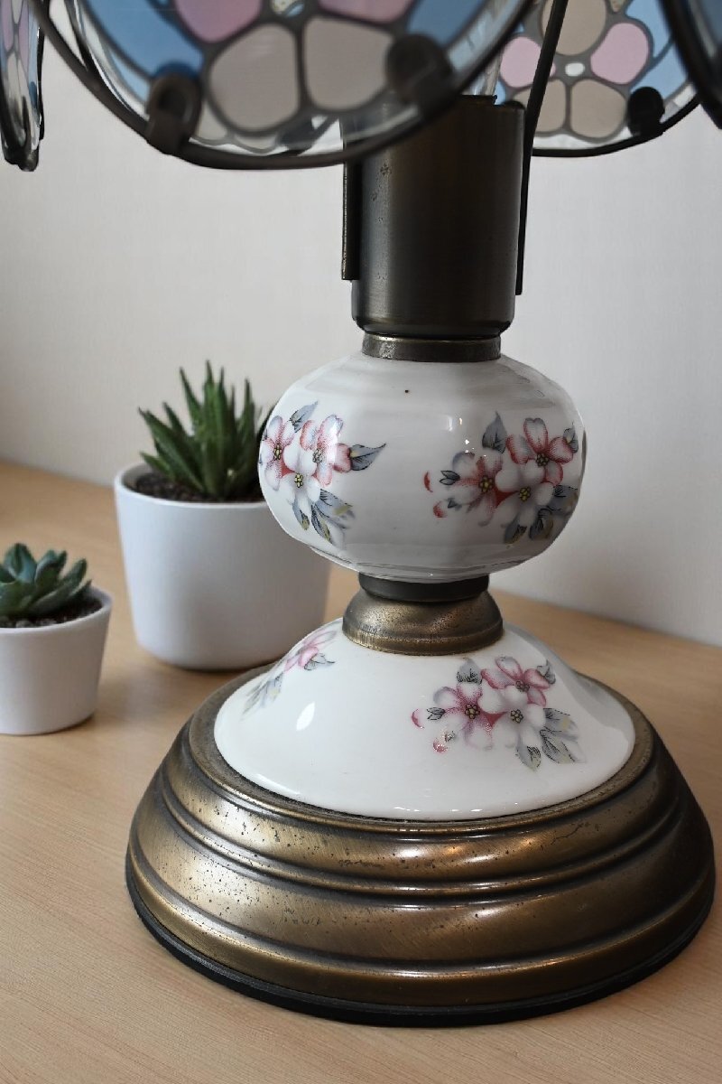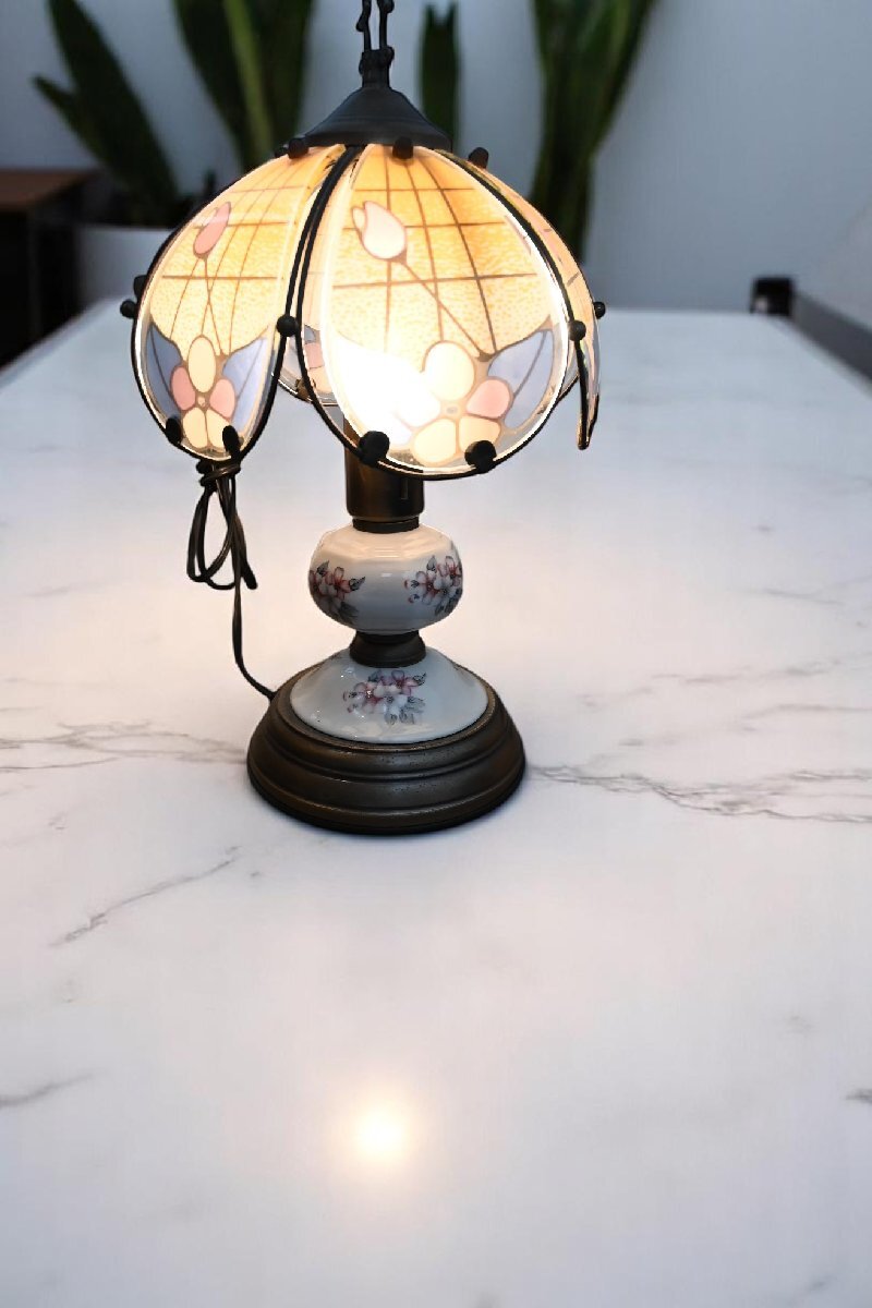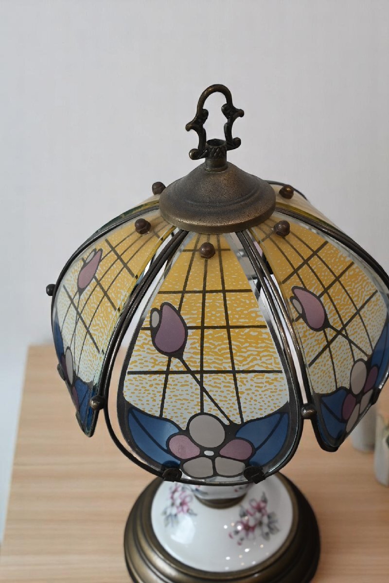 ○可愛い花びら型のシェードのスタンドライト 照明 夕焼けお花柄 陶器台座 レトロ ガーリー ヴィンテージ 古道具のgplus広島 2505i
