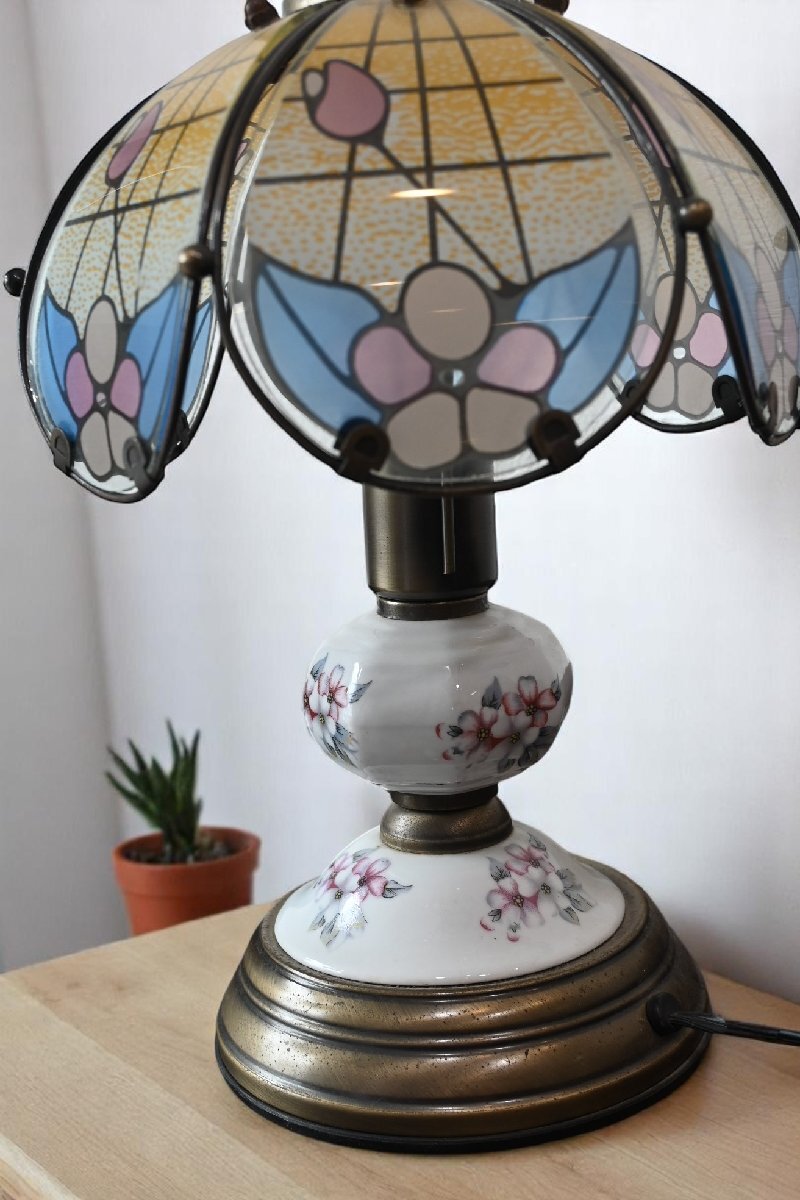 title:可愛い花びら型のシェードのスタンドライト 照明 夕焼けお花柄 陶器台座 レトロ ガーリー ヴィンテージ 古道具のgplus広島 2505i