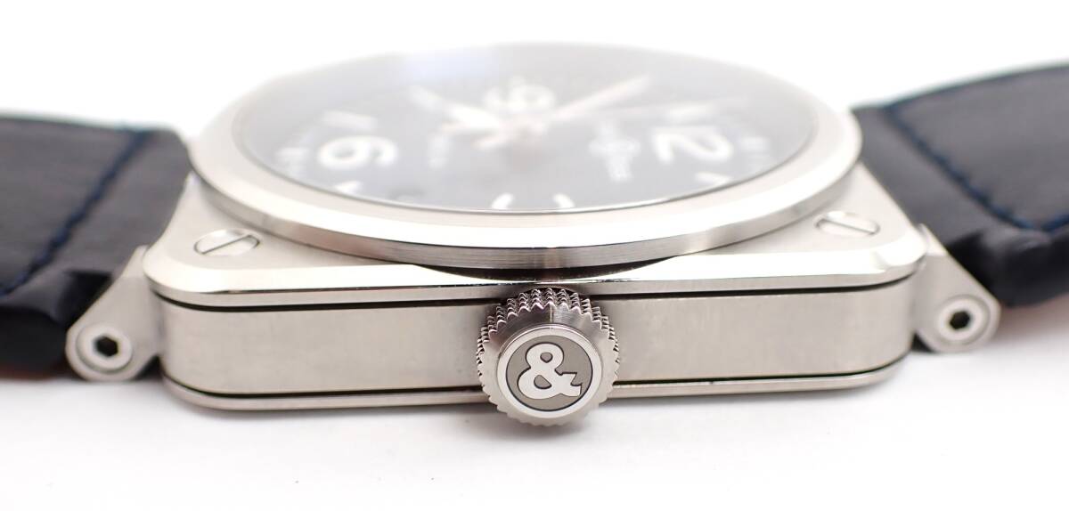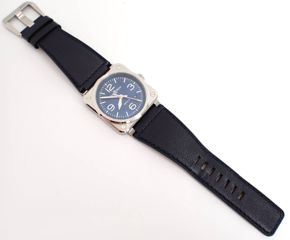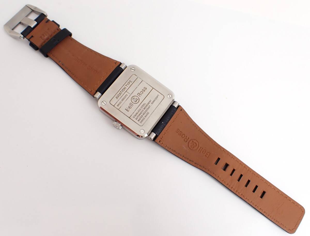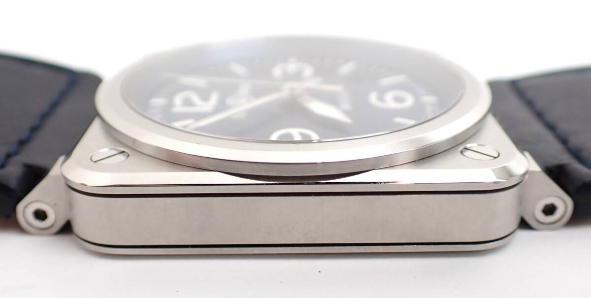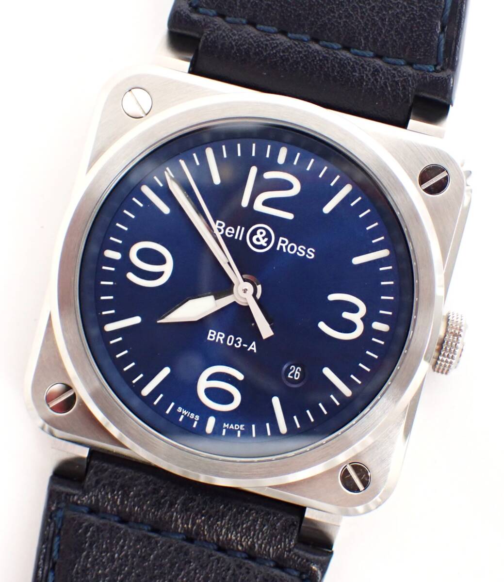 コメント | ベル&ロス ブルースティール BR03A-BLU-ST/SCA SS/革 ATモデルです。僅かな小キズやスレがありますが、特に目立つダメージはなく、良好な状態です。独特なスクエア型ケースと洗練されたブルーの文字盤が特徴です |