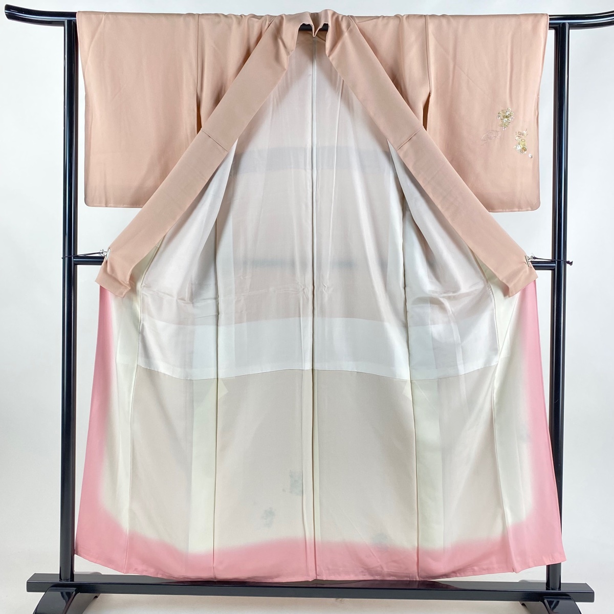 | 付下げ 美品 秀品 草花 笠松 刺繍 金糸 ピンク 袷 身丈156 裄丈62.5 S 正絹 【中古】 |