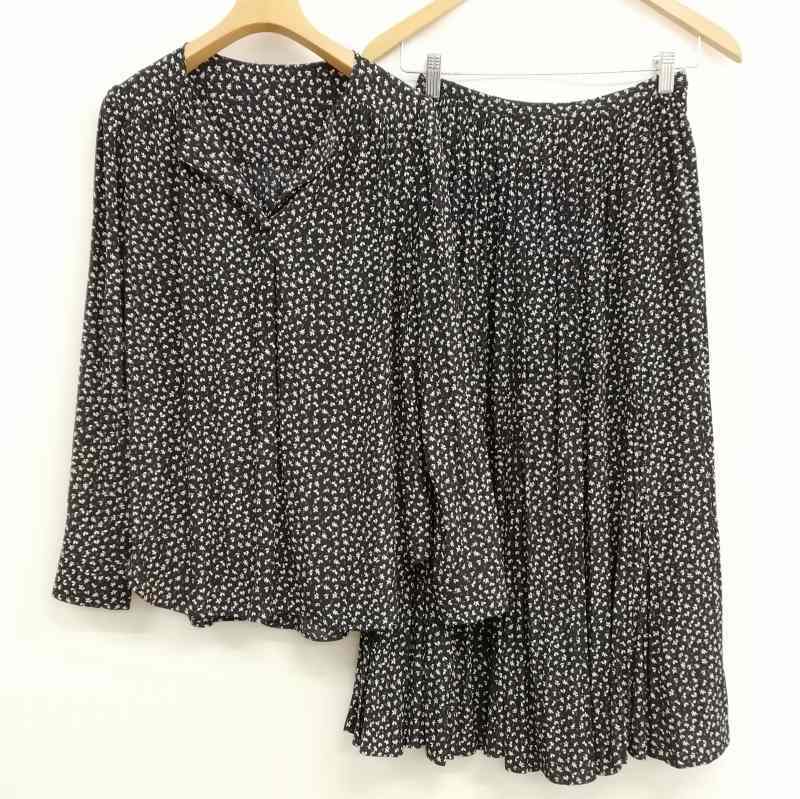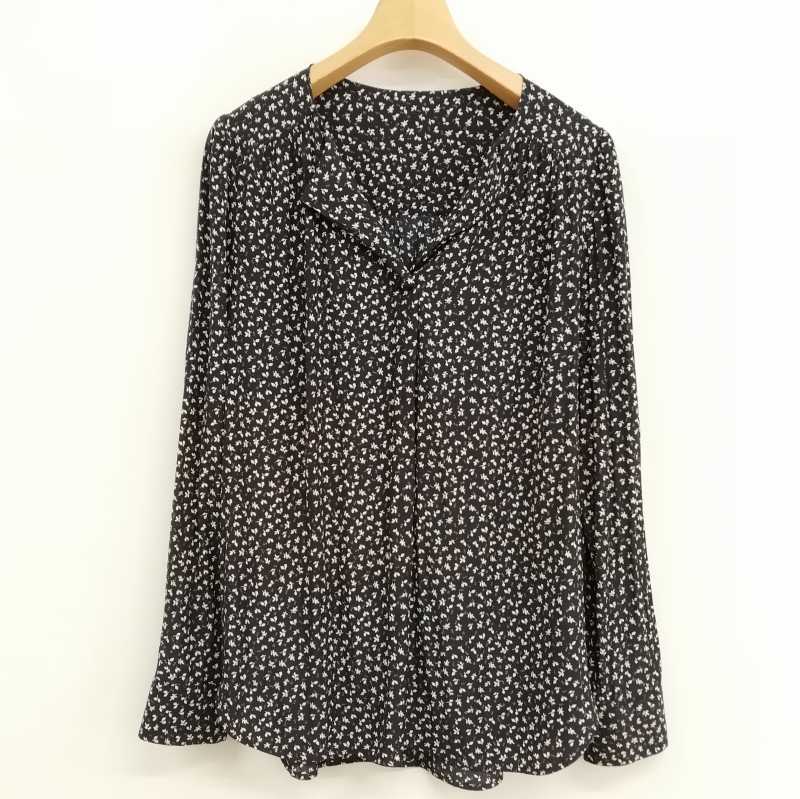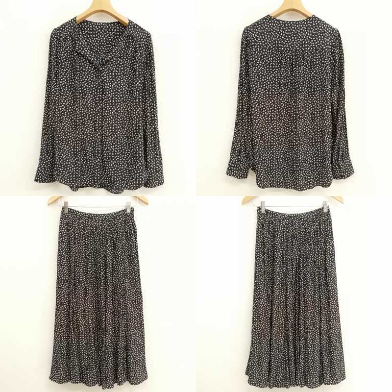 ルーニィ LOUNIE 美品 セットアップ ブラウス フレア ロング スカート 小花柄 36 ダークネイビー レディース