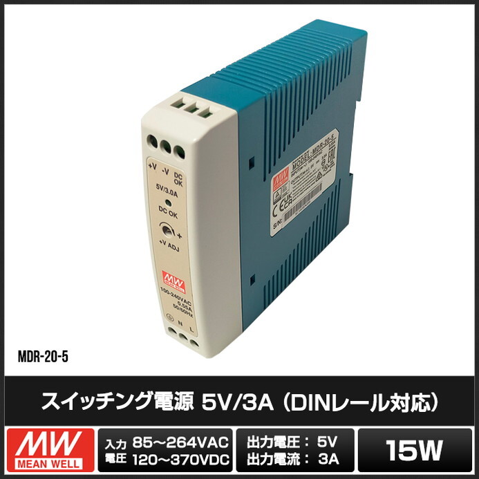 | 4643 スイッチング電源 5V/3A (DINレール対応) (MDR-20-5) | 1個 |