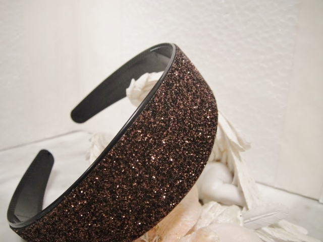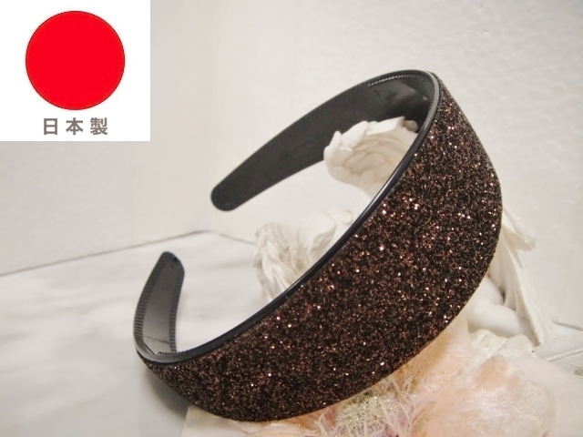 ♪ 新品 日本製 Made in Japan カチューシャ『高品質/頭がいたくなりにくい/幅広/グリッターラメ/ラメブラウン/茶』♪