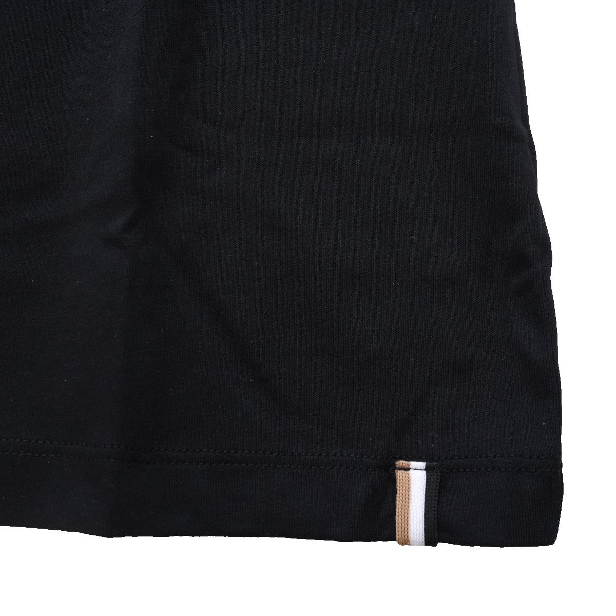 2025◆新品◆ボス◆ワンポイント BOSS ロゴ 裾シグネチャーストライプ 半袖 Tシャツ 黒M◆HUGO ヒューゴ 着心地快適オーガニックコットン製