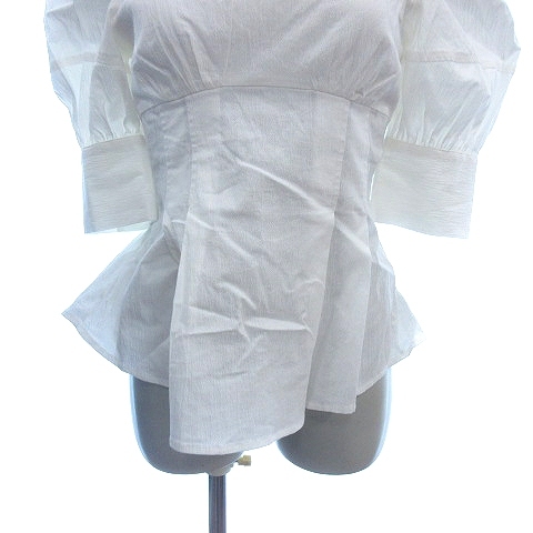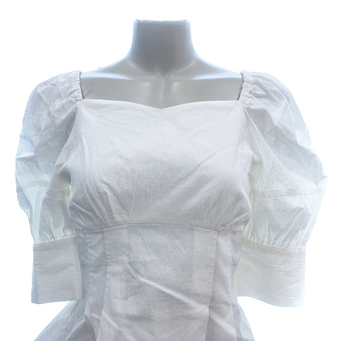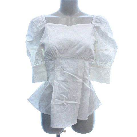 リエンダ rienda シャツブラウス スイートハートネック パフスリーブ 五分袖 F 白 ホワイト /AU レディース