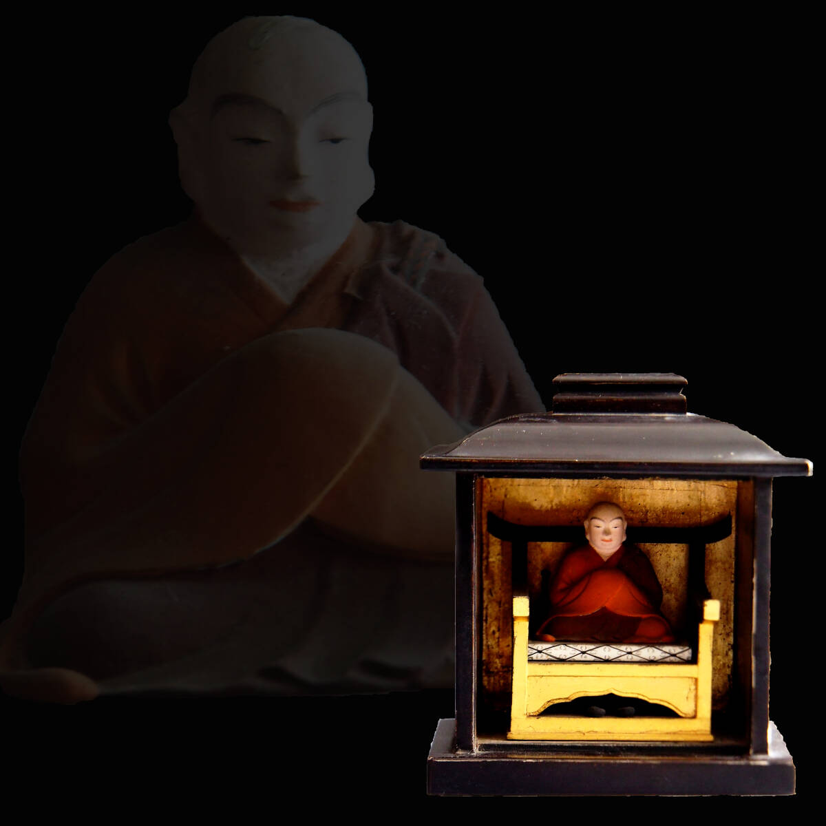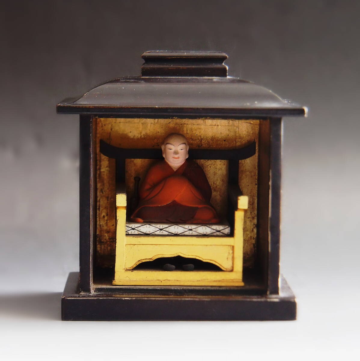 [禅] 仏教美術 弘法大師像 空海 高野山 真言宗 木彫 彩色 金彩 漆塗 厨子 仏像 佛教 古仏 仏具 仏器 仏師 仏陀 仏画 廃寺 骨董 古美術 時代
