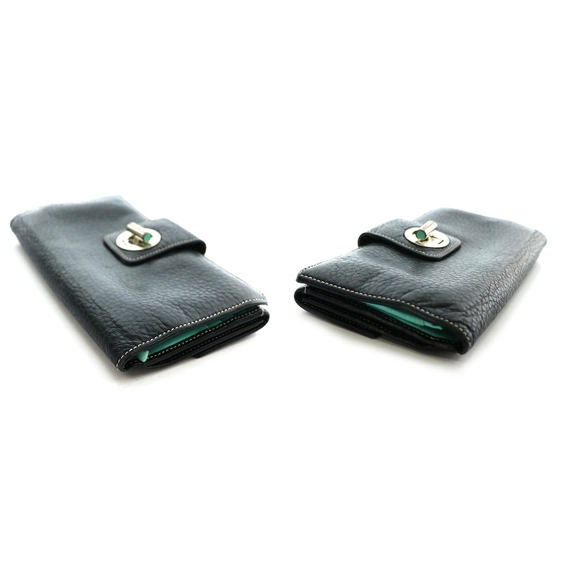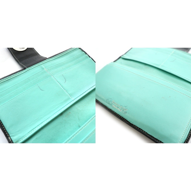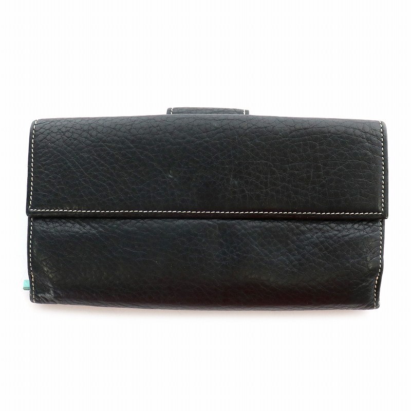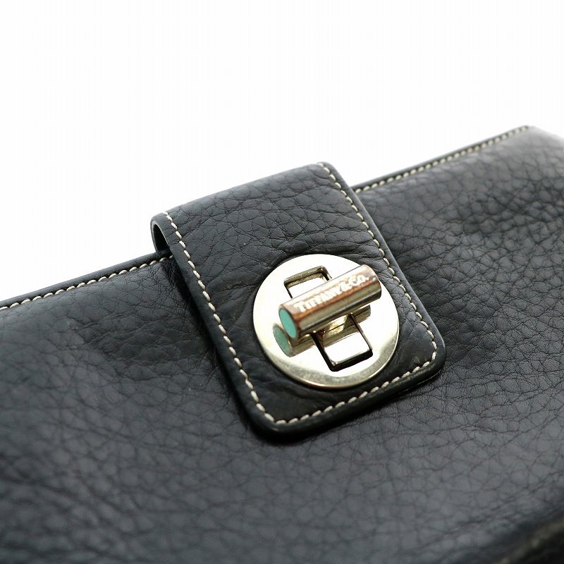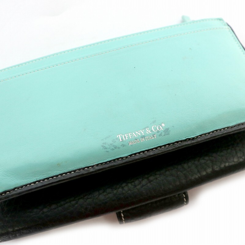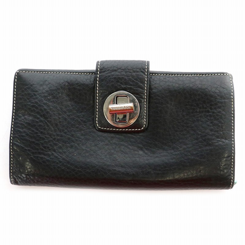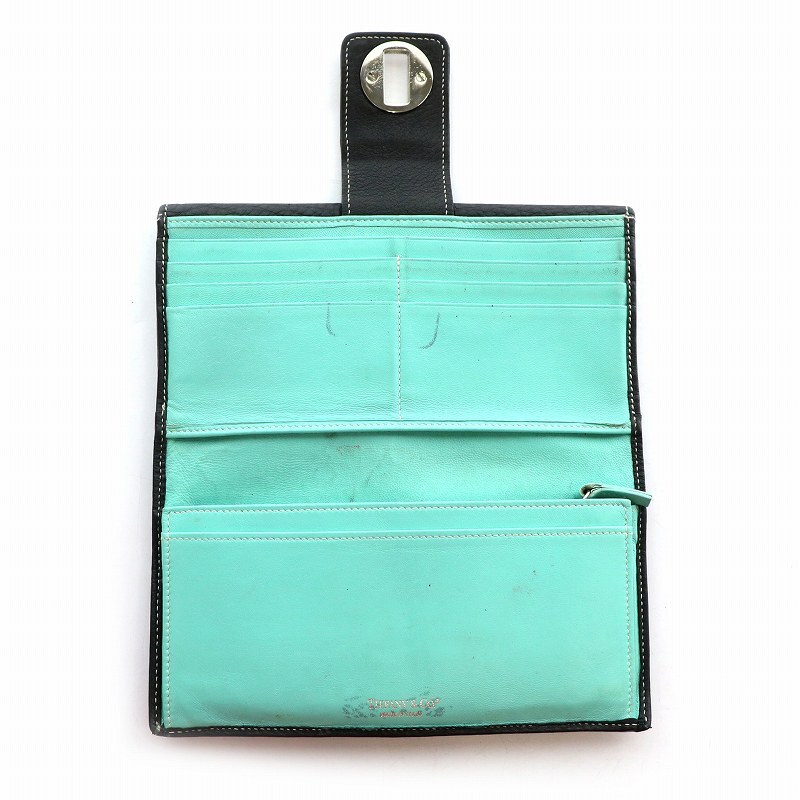 ティファニー TIFFANY & CO. 長財布 小銭入れあり レザー シボ革 皮革 ターンロック ロゴ ティファニーブルー 黒 エメラルドブルー