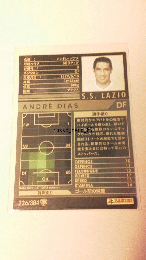 ☆WCCF2011-2012☆11-12☆226☆白☆アンドレ・ジアス☆SSラツィオ☆Andre Dias☆SS Lazio☆