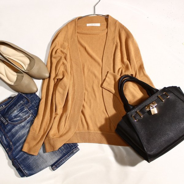 美品 After All アフターオール 綺麗めノーボタン ニット カーディガン M 春 秋 25B05